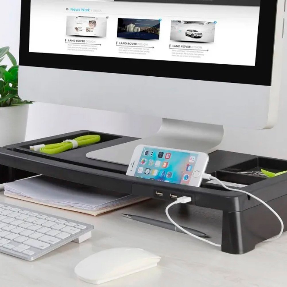 La Base Ergonómica de Escritorio OB-SUSB de Onebox es la solución ideal para quienes buscan mejorar su comodidad y salud en el trabajo. Este soporte, diseñado para elevar tu monitor o notebook, proporciona la altura perfecta para largas jornadas, cuidando la postura de tu cuerpo. Con la capacidad de soportar dispositivos de entre 13″ y 32″ y un peso de hasta 10 kg, este modelo es versátil y funcional. Sus 3 puertos USB integrados permiten conectar múltiples dispositivos, facilitando el trabajo diario. Fabricada en plástico antideslizante, asegura estabilidad y seguridad. Con un diseño que permite el almacenamiento de teclado y mouse debajo, es liviana y fácil de trasladar, convirtiéndose en una opción práctica para cualquier oficina. Mejora tu espacio de trabajo con este soporte fijo, optimizando la organización y el uso de tecnología.