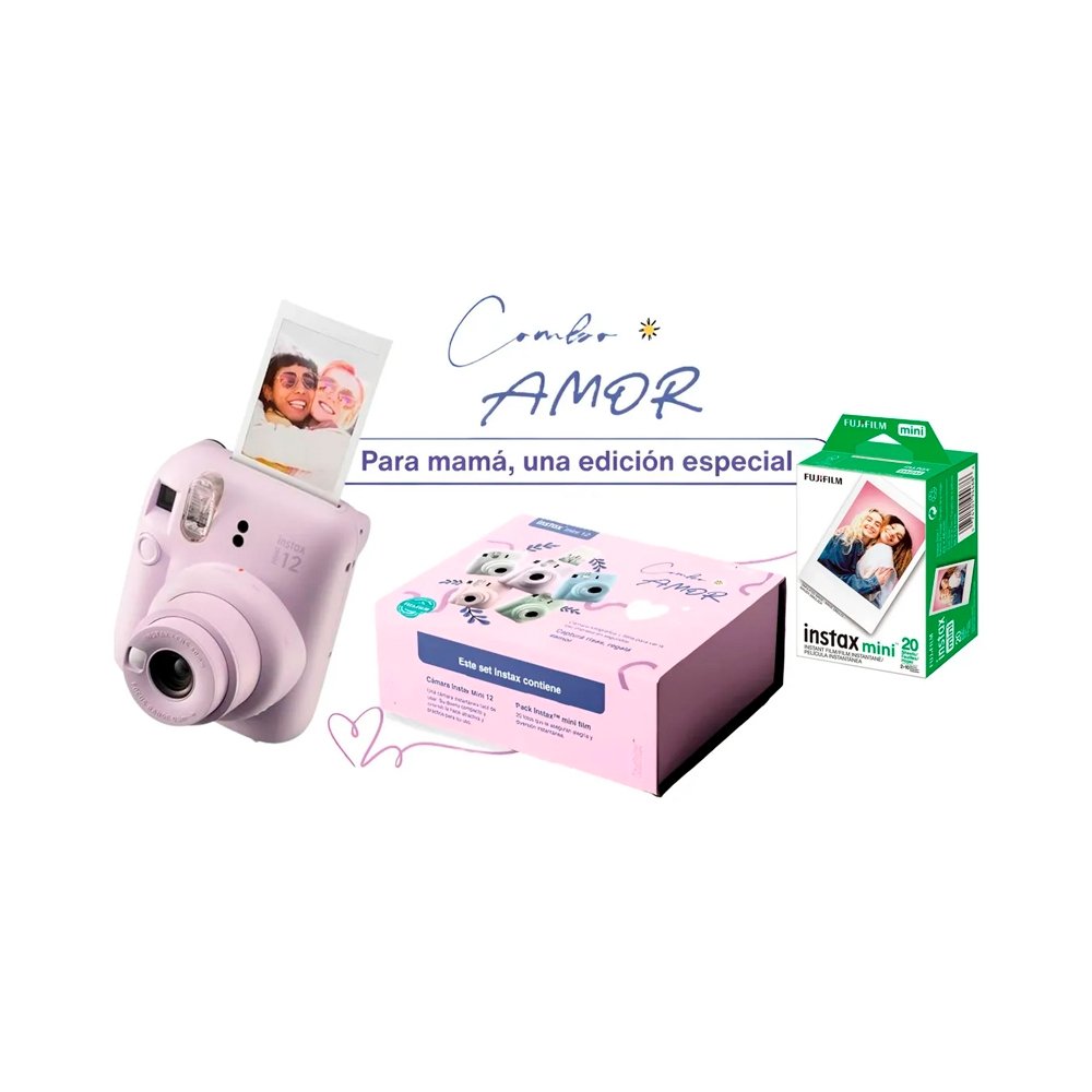 CAMARA INSTAX 12 MINI LILA + 20 FOTOS + CAJA AMOR