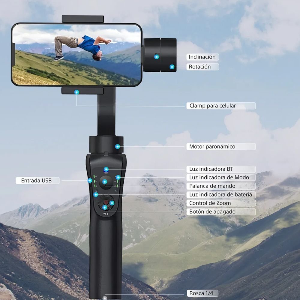 – Utilice con la aplicación Gimbal Pro, para controlar las funciones seleccionadas de los dispositivos iOS/Android.