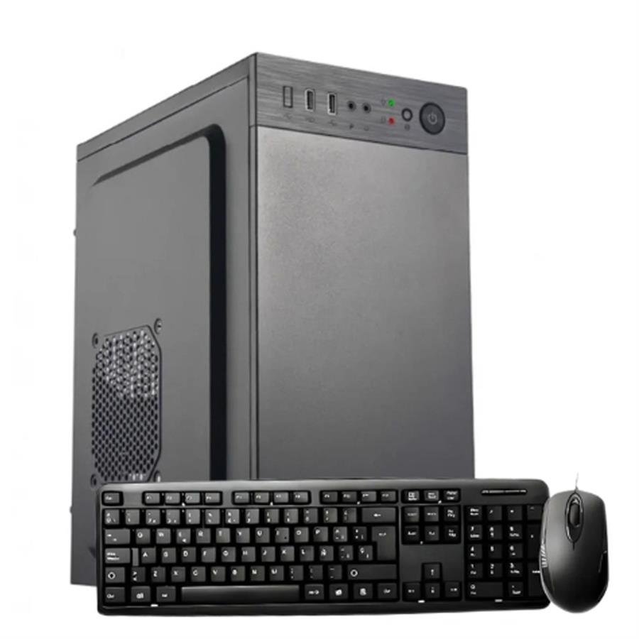 - Incluye gabinete, fuente, teclado y mouse para una solución más completa.