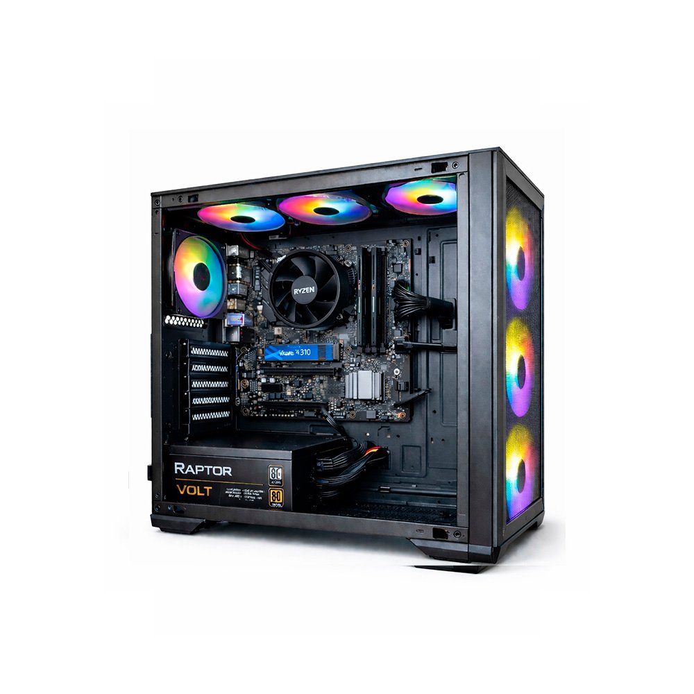 Con 16GB de RAM DDR5 a 5600MHz y un SSD Crucial P310 1TB NVMe Gen4 con velocidades de hasta 7100MB/s, el sistema arranca en segundos, las aplicaciones se abren al instante y los tiempos de carga se reducen al mínimo. Todo está montado en un gabinete Cougar Airface con excelente flujo de aire y una fuente Raptor Volt 650W 80 Plus Bronze, lista para acompañar una futura placa de video dedicada si más adelante querés subir todavía más el rendimiento en juegos.