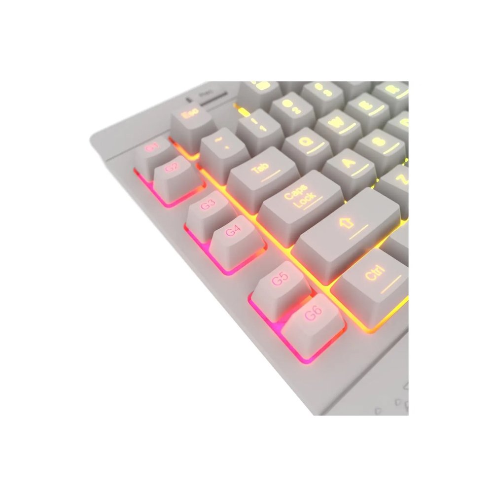 El Redragon Shiva K512W es el centro de comando definitivo para tu escritorio, ahora en una espectacular versión en color blanco. Este teclado de membrana te ofrece un control sin precedentes gracias a sus 6 teclas macro programables y sus controles multimedia dedicados. Grabá tus secuencias de comandos más complejas y manejá tu música sin salir del juego. Es la herramienta perfecta para quienes buscan funcionalidad y una estética impecable.